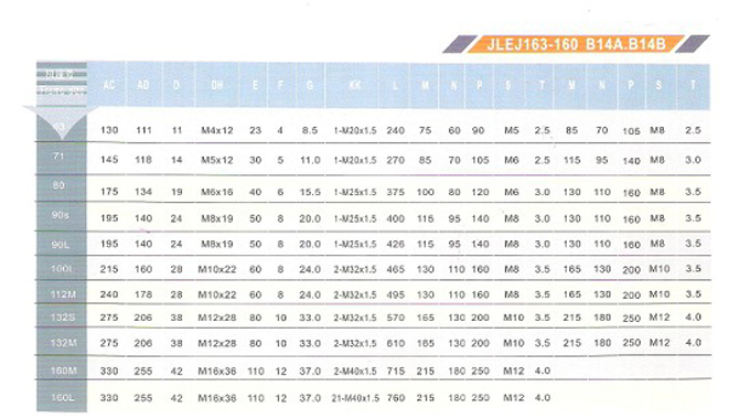 电机安装方式为:B5标准法兰; B14小法兰; B3卧式电机宽电压:(220|380V;240|415V;260|440V;280|480V)宽频率:50|60HZ其特点是:低噪音、小振动其绝缘等级为F级绝缘,可耐155℃高温 ;其防护等级为IP55